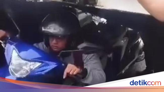 Dari video yang beredar, tampak sejumlah pria mendorong motornya di bawah kolong kontainer. Mereka mendorong motornya perlahan-lahan.